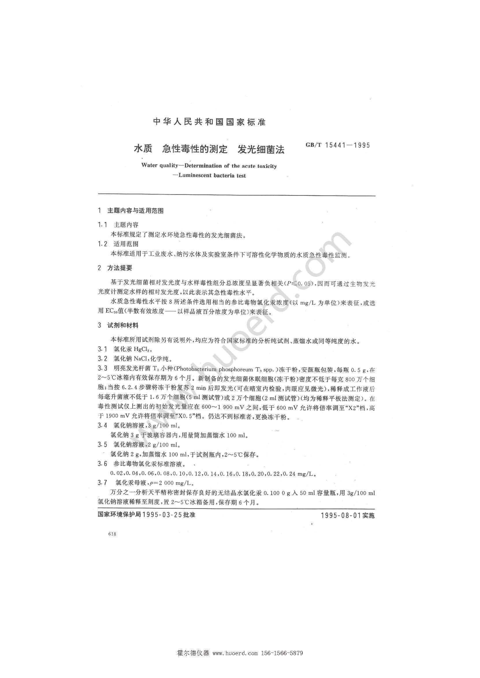 水質急性毒性的測定 發光細菌法 國標GB_T15441-1995